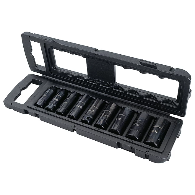 | Included | (9) deep sockets: 1/4", 5/16", 3/8", 7/16", 1/2", 9/16", 5/8", 11/16", 3/4" |