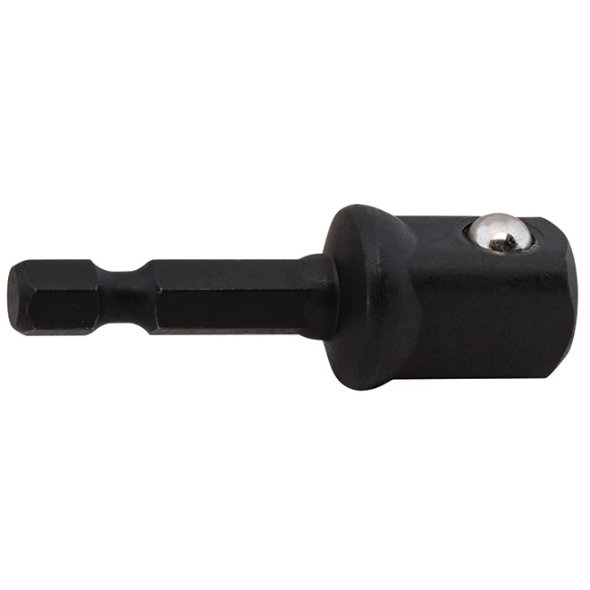 Use the black steel Craftsman impact socket adapter for its robustness. The doable ball detent design provides improved socket retention. Coupled with a hex-shaped 1/4-in shank, it is compatible with a 1/2 in socket adapter. Its 2 in design enables the impact driver socket adapter to resist high torque tools.