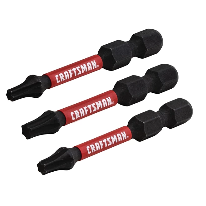 Use these Craftsman screwdriver bits for impact driving. The Torx screwdriver bits utilize high-speed steel and a black oxide coating to make them strong. The impact-rated driver bits handle the most challenging job site tasks.