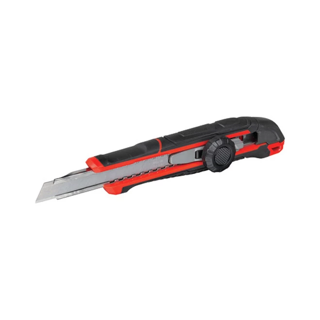 This Craftsman® Premium 9 mm snap-off blade utility knife features a dial wheel locking mechanism for quick adjustments during use and a blade release mechanism to facilitate changing blades. Its optimized ergonomic bi-material grip keeps it comfortable during prolonged use while the 9 mm blade sections snap off to provide fresh, sharp cutting points for a total of 13 cutting points on included blade. This product is backed by a limited lifetime warranty.