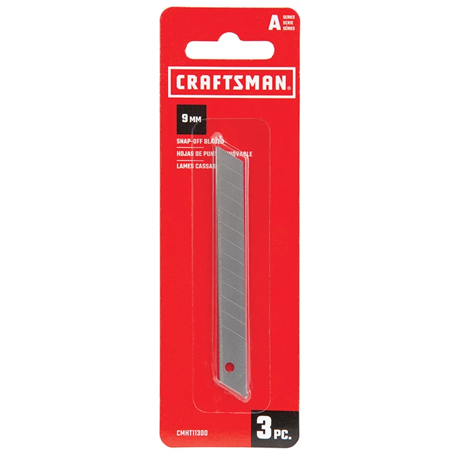 This set of 3 snap-off blades by Craftsman® is designed to fit most 9 mm snap-off blade knives. These blades offer multiple snap-off points, eliminating the hassle of constantly changing blades and continuously providing a sharp edge.