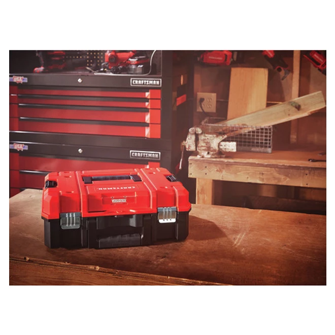 A rugged and durable water sealed tool box, the Craftsman(R) Versastack™ suitcase easily fits cordless and corded power tools as well as accessories with ease. Ultra-durable and portable, the suitcase is the convenient alternative to the standard tool box. The suitcase can easily stack on top of other Versastack™ components and connect with durable latches for storage convenience.