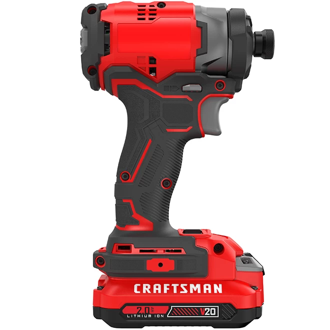 Use this Craftsman impact driver kit for all your drilling projects. Its 3-speed settings provide improved control. This cordless impact driver generates a torque of 1700 in-lbs for driving large fasteners. The impact driver is red and black and comes with a soft case for convenient storage.