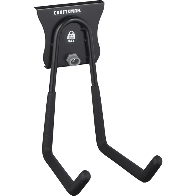 The Craftsman® multipurpose long hook mounts to VersaTrack rail to create a flexible and convenient storage system. Its Hooktite latching system secures the hook to the rail so that the hook will stay attached to the wall when you remove your stored item. Two large sturdy hooks are useful for holding a wide variety of items. The heavy-duty steel hook is coated with a non-slip material that prevents scratches and corrosion. This product is backed by a 1 year limited.