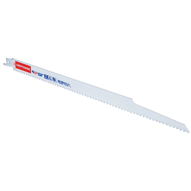 Cut woods and metals with this Craftsman reciprocating saw blade. Optimized for a fast, efficient cut, this blade delivers high performance. The sturdy build of this bi-metal reciprocating saw blade improves durability. Cut smoothly with the precise 6 TPI design. This 12-inch saw blade comes in an individual package.