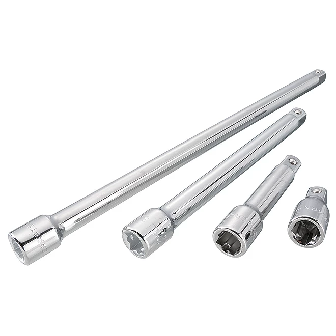 The Craftsman® 1/2” drive mechanic extension bar set features large markings for quick accessory identification and a chrome finish fully polished ensuring corrosion resistance. The kit includes (4) 1/2” drive extensions bars of 1.5” (38 mm), 3” (76.2 mm), 6” (15.24 cm) and 10” (25.4 cm) for an accrued accessibility and performance. This product is backed by a full lifetime warranty with a hassle-free replacement.
