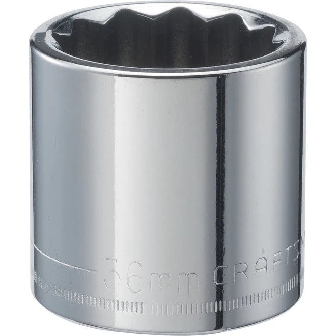 Complete your toolbox with this 12-point 1/2-in drive and 36 mm shallow socket. It features large size markings and a rust-resistant coating.