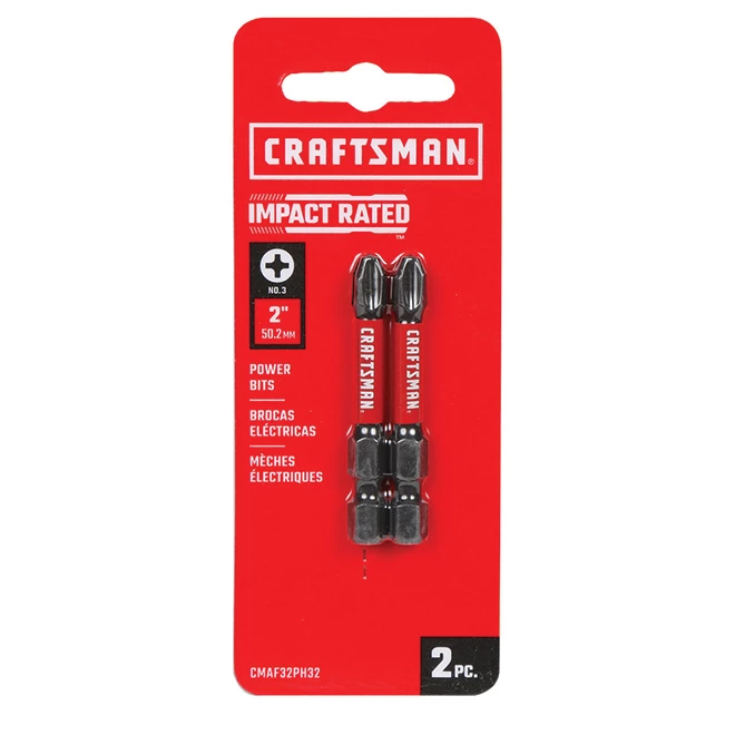 Use these hex shank Craftsman impact driver bits to fasten screws to wood. Get a precise fit from the optimized tip designed to prevent stripping and cam out. Absorb impacts to stop breakage with the optimized torsion zone. Shock resistance in the S2 modified steel increases longevity and durability. Get two black oxide, Phillips #3 bits per pack.