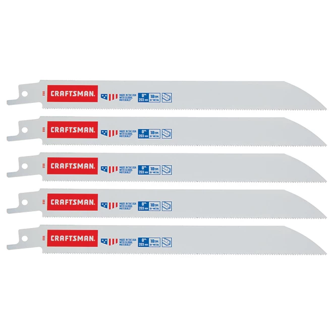 Get the Craftsman reciprocating saw blade for efficient cutting experience. One pack contains five units. This bi-metal reciprocating saw blade delivers high durability and performance. With 18 TPI, this cutting blade resists friction and heat buildup. The 8-inch saw blade is ideal for smooth metal cuts.